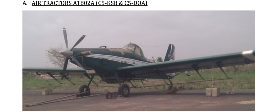 In May, 2018— while the inquiry into Jammeh’s assets was still ongoing and the court freeze order in place— the Ministry of Finance sold the two air tractors with an estimated value of $900, 000– according to Virdis— to Sankajula Holding Company for $240, 000. Sources informed The Republic that Turo Darboe sold the two air tractors to the Best Aircraft Deals LLC, of Utah— USA at $350, 000.