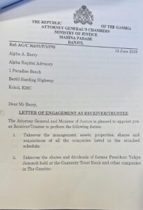 Alpha Kapital was hired in the second week of June 2019, three months after the Commission submitted its report to President Adama Barrow, and 1 year 10 months after the firm was registered. Tambadou said the firm was hired by the ministerial committee comprising himself, former tourism minister Hamat Bah and former lands minister Musa Drammeh.